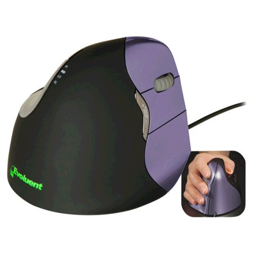 Die Evoluent - Vertical Mouse ist ergonomische Design Maus, die die Gefahr eines Tennis-Ellbogens reduziert. Bei einer gewöhnlichen Maus wird der Unterarm verdreht. Aufgrund der senkrechten Handstellung umgeht man ein Verdrehen des Unterarmes und verringert somit das Risiko eines Tennisarmes. Bei Nutzern, die bereits einen Tennisarm haben, kann die Vertical Mouse dazu beitragen, die Schmerzen zu mindern.