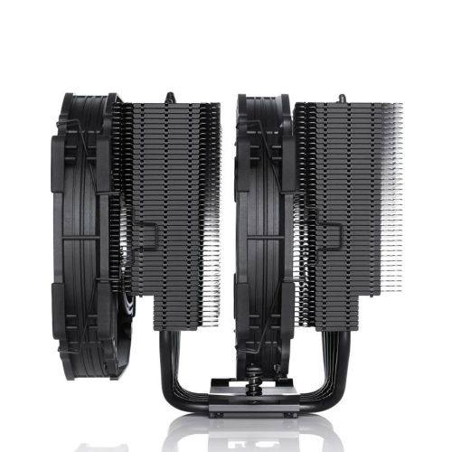 Der NH-D15 chromax.black ist eine komplett in Schwarz gehaltene Version von Noctuas vielfach ausgezeichnetem Flaggschiff-Modell NH-D15. Das Erfolgsrezept des Premium-Kühlers bleibt dank der gleichen Doppelturm-Konstruktion und den bewährten NF-A15 PWM Lüftern unverändert: Der CPU-Kühler bietet hervorragende Laufruhe in Verbindung mit einer Kühlleistung, die durchaus mit Komplett-Wasserkühlungen konkurrieren kann. Die chromax.black Version mit ihren schwarzen Lüftern und ihrem schwarz beschichteten Kühlkörper kombiniert diese Vorzüge überdies mit einem schicken StealthDesign. Komplettiert wird das rundum hochwertige Gesamtpaket durch das renommierte Multi-Sockel-Montagesystem SecuFirm2 und Noctuas beliebte NT-H1 Wärmeleitpaste. Ob für Übertakter oder Silent-Enthusiasten: Der NH-D15 chromax.black ist eine echte Premium-Lösung, die genauso gut aussieht wie sie kühlt.