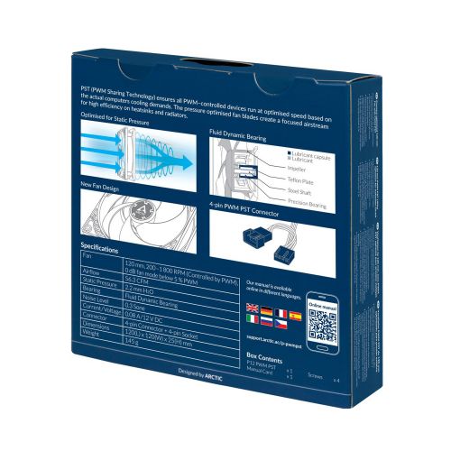 Bei der Entwicklung des Arctic P12 PWM wurde besonderer Wert auf einen fokussierten Luftstrom und damit einen hohen statischen Druck gelegt. Der Lüfter bietet eine äußerst effiziente Kühlung, auch bei erhöhtem Luftwiderstand. Daher ist der P12 PWM besonders für den Einsatz an Kühlkörpern und Radiatoren geeignet.